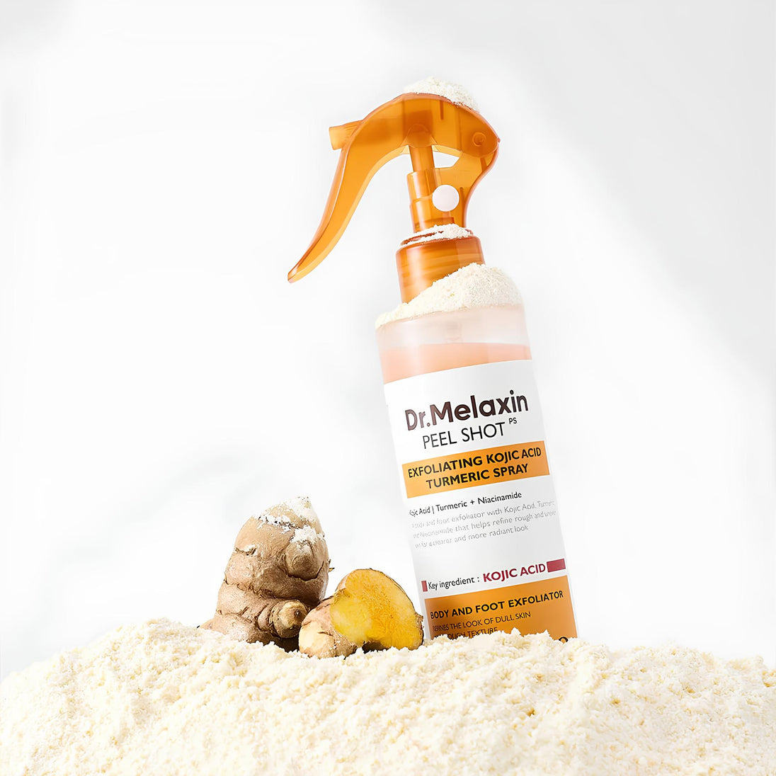 The Dr.Melaxin Turmeric Exfoliating Solution Spray is formulated to remove dead skin buildup, refine rough texture, and reveal a more radiant complexion without stripping moisture. Enriched with turmeric extract, kojic acid, niacinamide, and a gentle AHA/PHA complex, it helps improve uneven tone, reduce dullness, and promote visibly smoother, healthier-looking skin.