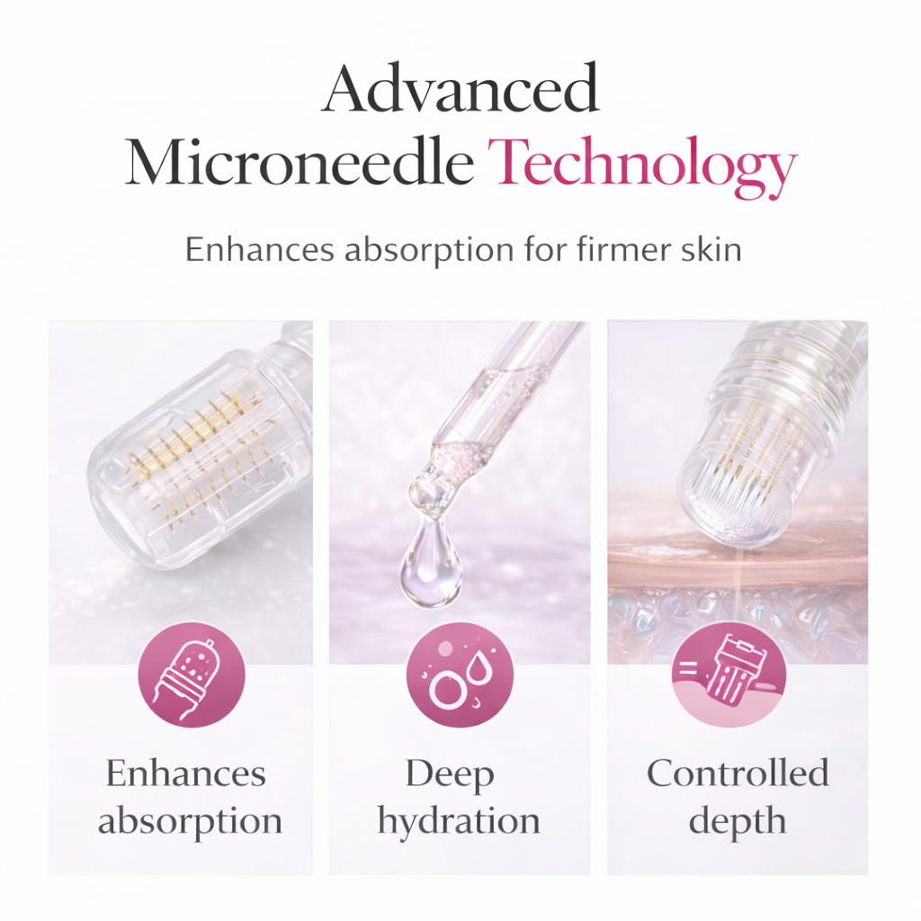 This Microneedle Anti-Aging Serum uses advanced microneedle infusion technology to enhance ingredient delivery, helping to deeply hydrate, smooth wrinkles and improve elasticity for a fresher, more youthful look.