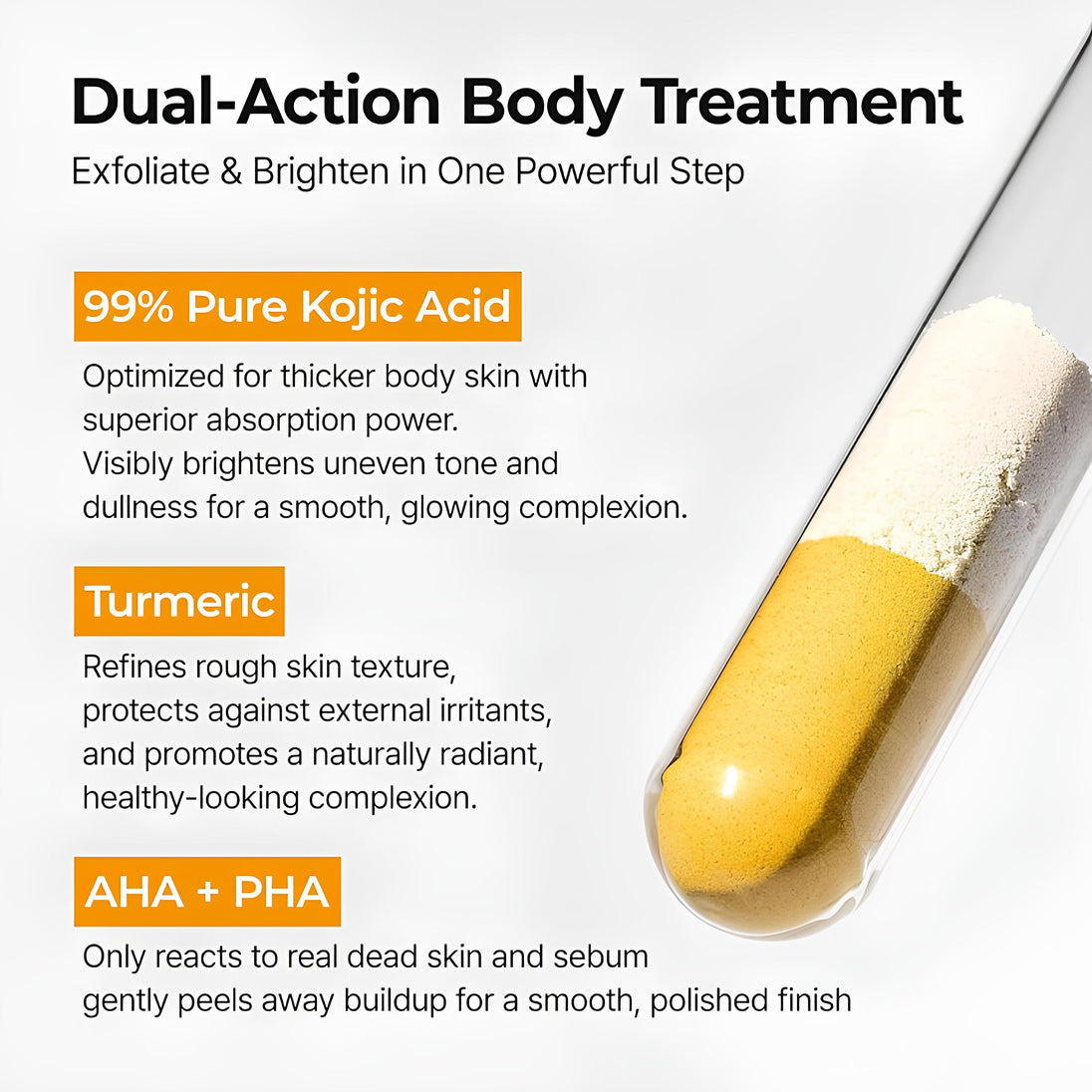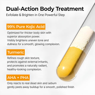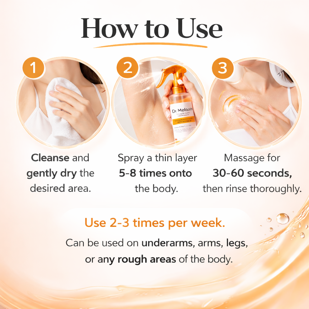 The Dr.Melaxin Turmeric Exfoliating Solution Spray is formulated to remove dead skin buildup, refine rough texture, and reveal a more radiant complexion without stripping moisture. Enriched with turmeric extract, kojic acid, niacinamide, and a gentle AHA/PHA complex, it helps improve uneven tone, reduce dullness, and promote visibly smoother, healthier-looking skin.